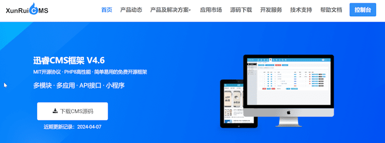 更为主要的是迅睿CMS是遵循MIT开源协议的,而且更新也是比较及时,我们看到最新的版本更新是4月份。有比较齐全的应用市场有丰富的主题和插件。当然最为主要的是内容系统的CMS中,国内可选的不多,所以正好这款CMS填补空白。