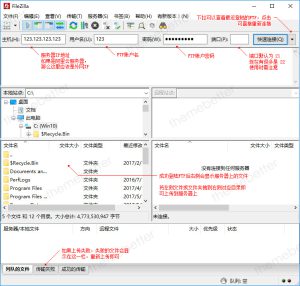 老卫为大家准备一张图让你对FileZilla有足够的认识,图中的文字标注也请看一遍。